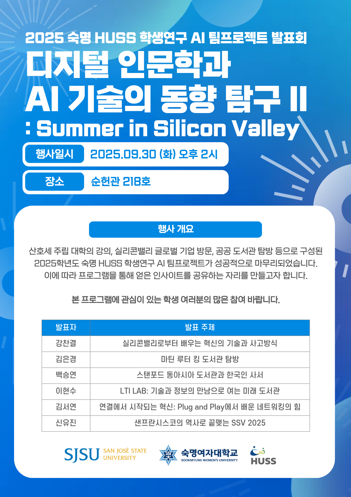 주제: 디지털 인문학과 AI 기술의 동향 탐구 Ⅱ : Summer in Silicon Vally 결과보고회
