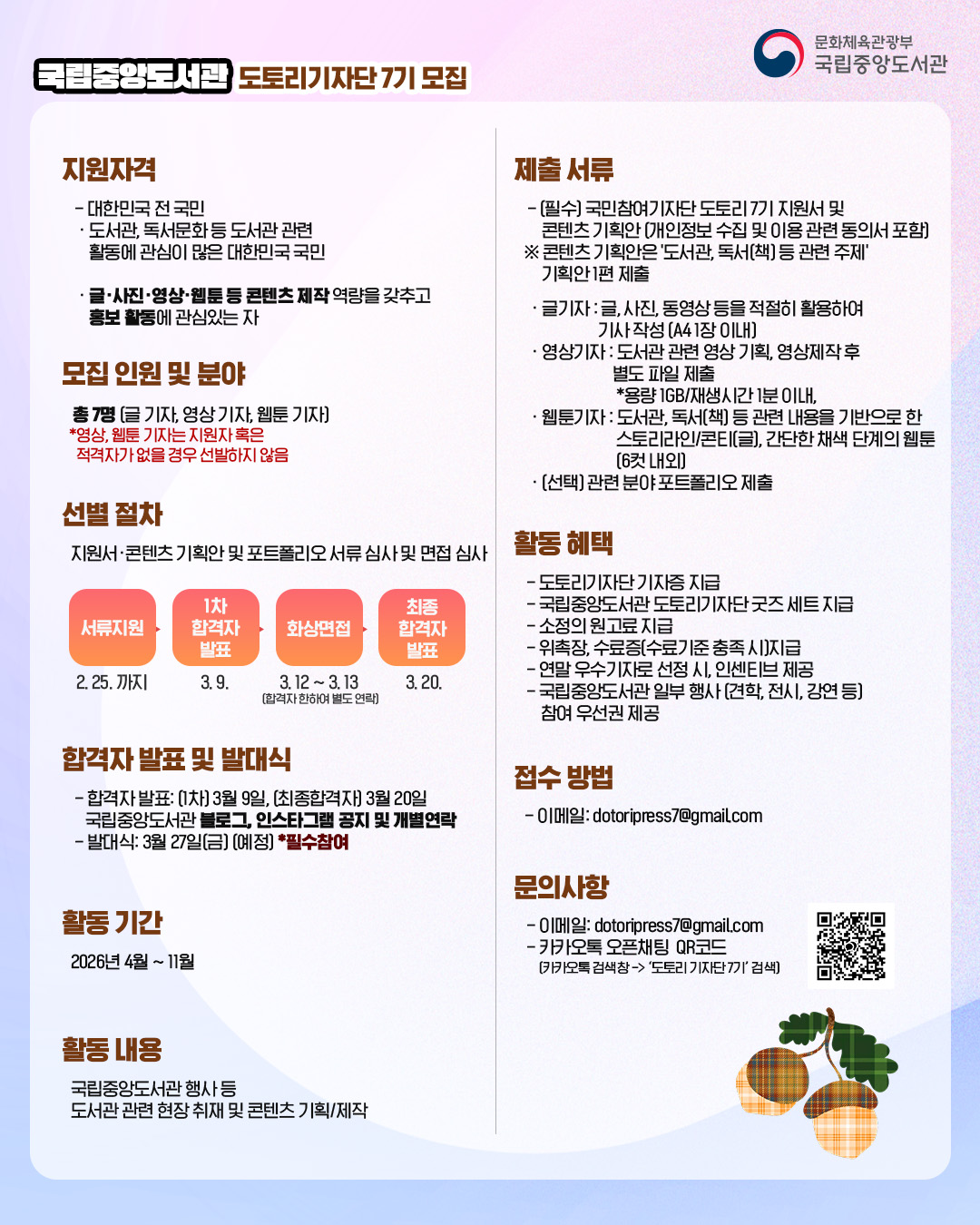 [대외활동/수상] 2026년 국립중앙도서관 도토리 기자단 7기 모집 안내